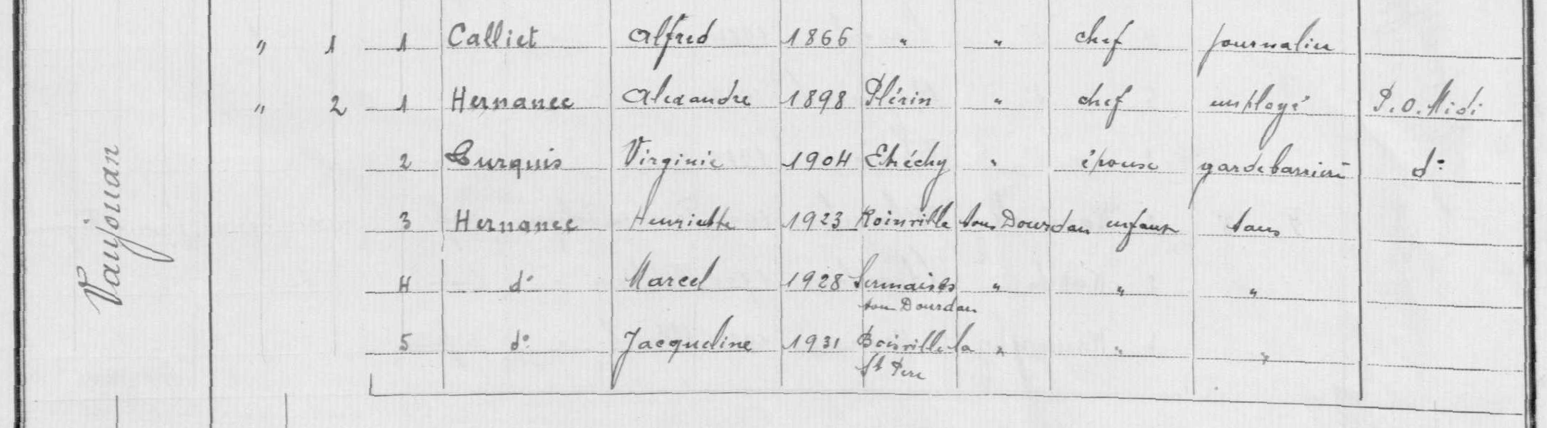 - 1931 — Désormais, les ouvriers de la ferme de Valnay sont explicitement recensés comme résidant à Vaujouan.