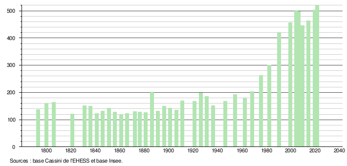 Sur la base de données empruntées, pour les années 1793-1999, au site du Laboratoire de Démographie et d'Histoire Sociale de l'EHESS, École des hautes études en sciences sociales; et, pour les années 2006 à 2021, au site de l'INSEE, Institut national de la statistique et des études économiques.