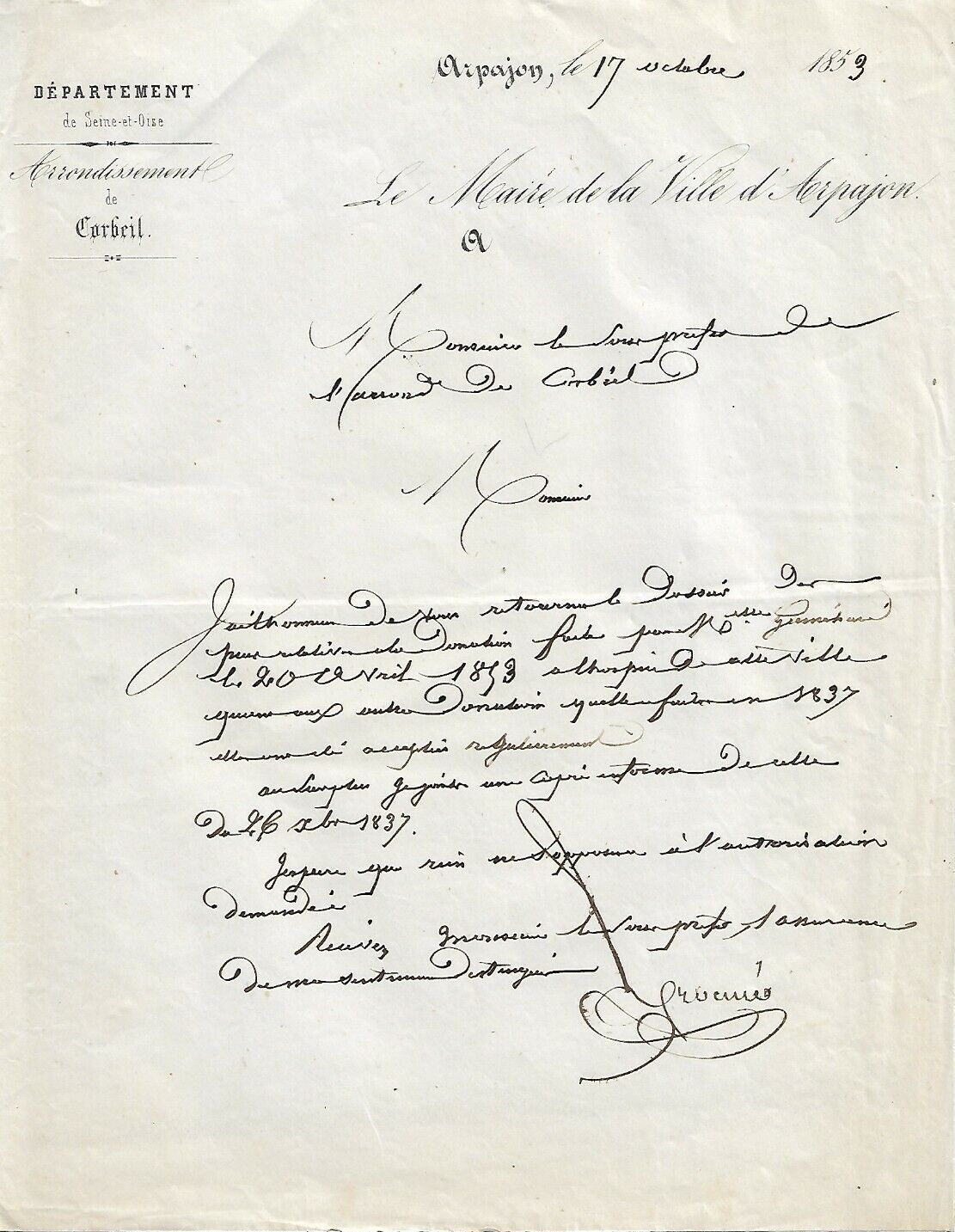 - Quelques courriers administratifs de 1853 (en vente sur un site d'enchères en ligne en 2023)