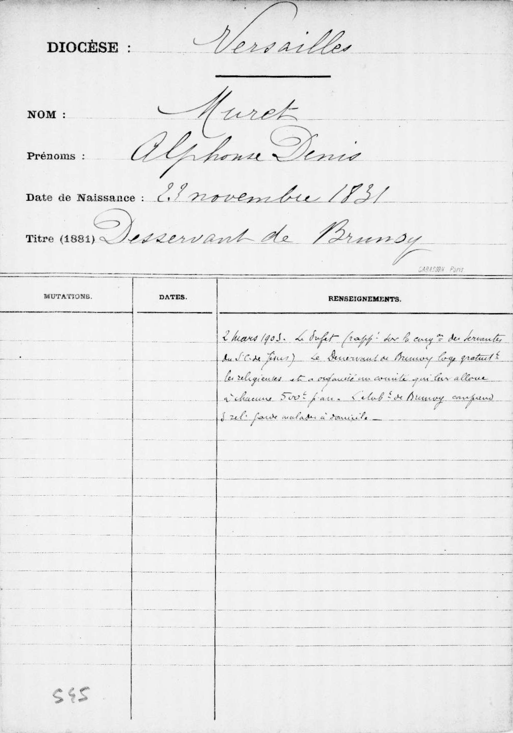 - Carrière: desservant de Brunoy (1881)