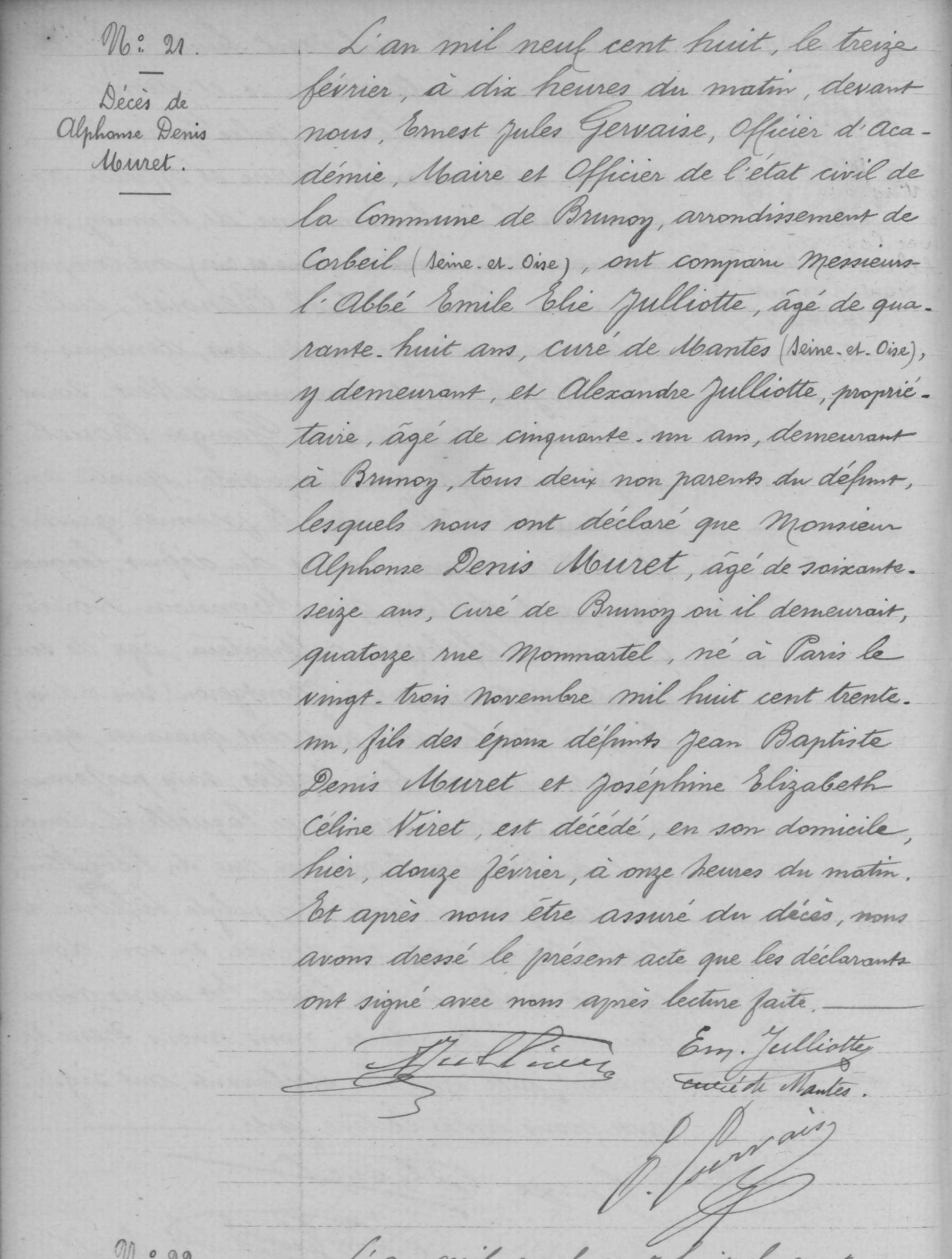 - Il mourut à Brunoy le 12 février 1908 à son domicile 14 rue Monmartel, âge de 76 ans.