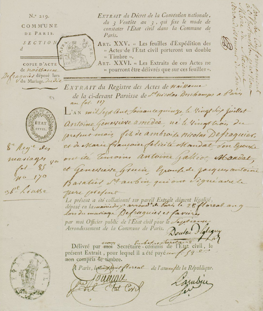 - Naissance à Paris en 1775 — AN LH/1021/52.