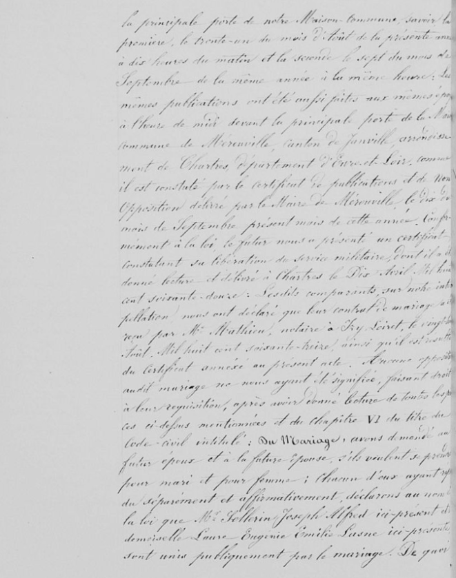 - Bans publiés en août 1873 à Mérouville (Eure-et-Loir).