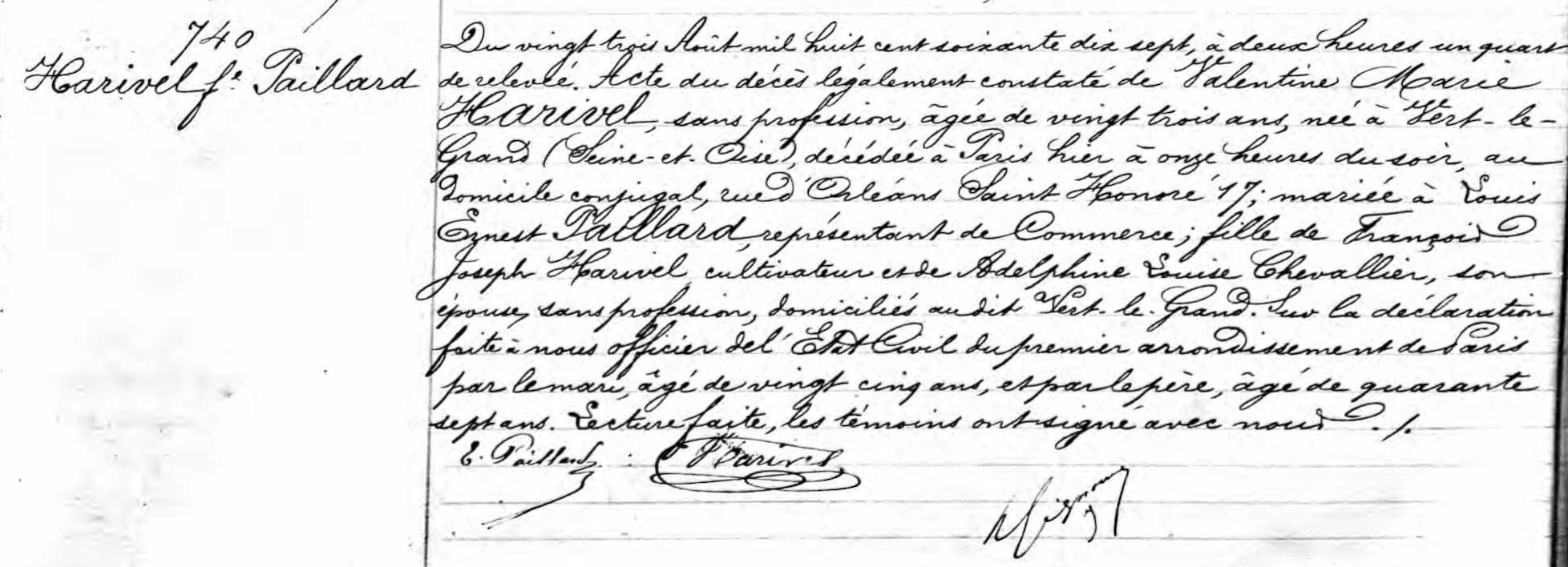 - Décès de sa fille à Paris en 1877 — AD75 V4E 2544.