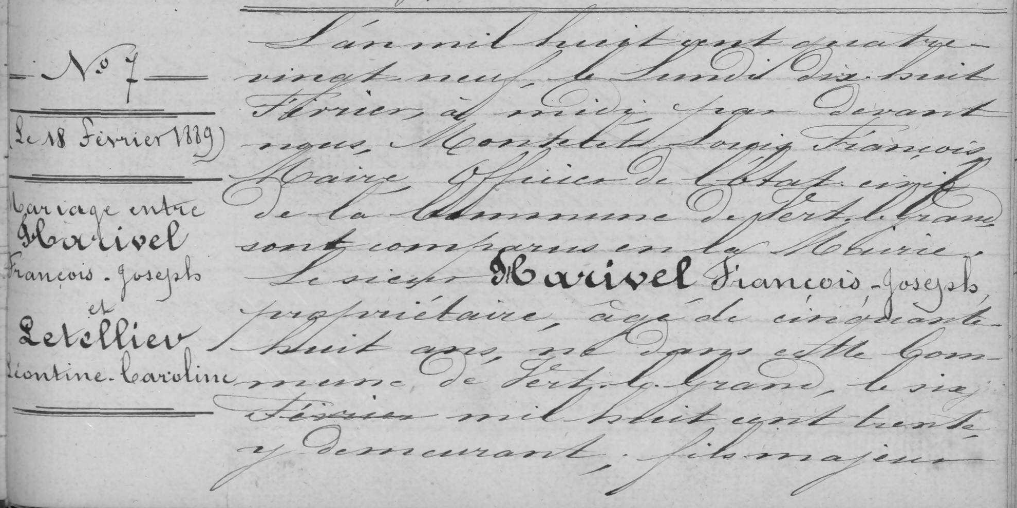 - Mariage à Vert-le-Grand en 1853 — AD91 4E/2893.