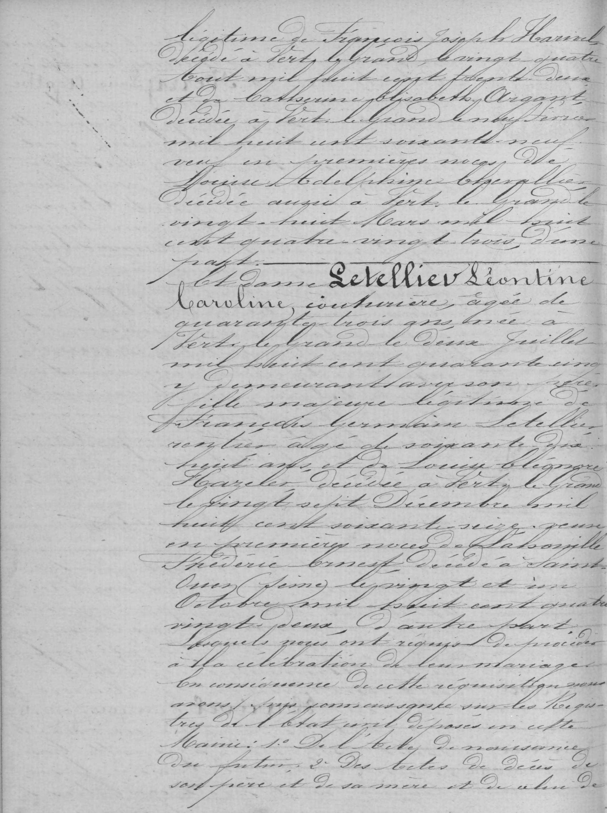 - Il se maria en secondes noces à Vert-le-Grand le 18 février 1889 avec Léontine-Caroline Letellier (1834-?), veuve de Frédéric-Ernest Lahouille avec lequel elle s'était mariée à Vert-le-Grand le 20 août 1867..