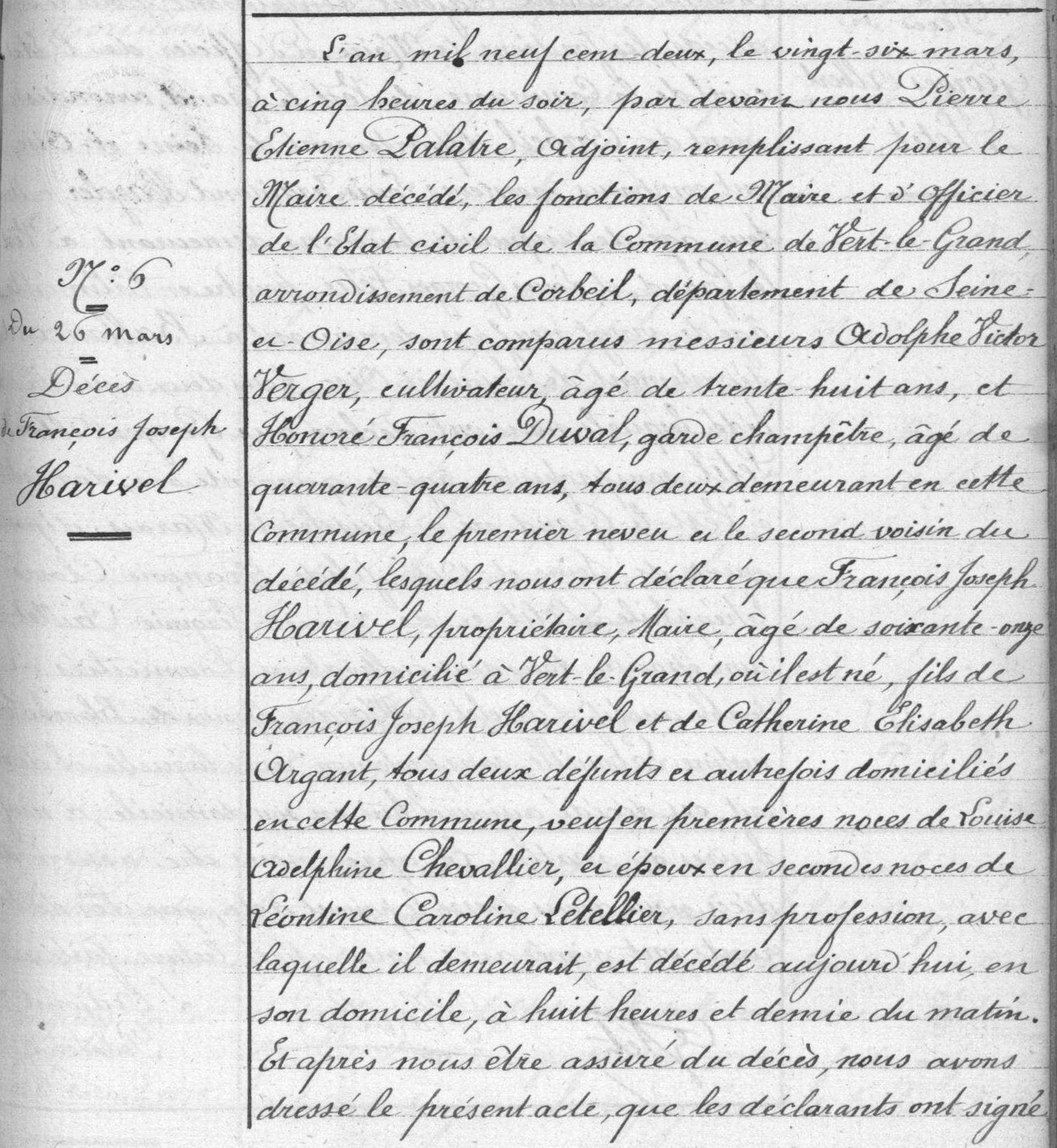 - Il mourut à Vert-le-Grand le 26 mars 1902 âgé de 71 ans.
