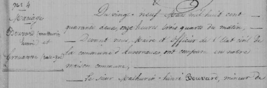 - Mariage à Auvernaux en 1842 — AD91 4E/128.