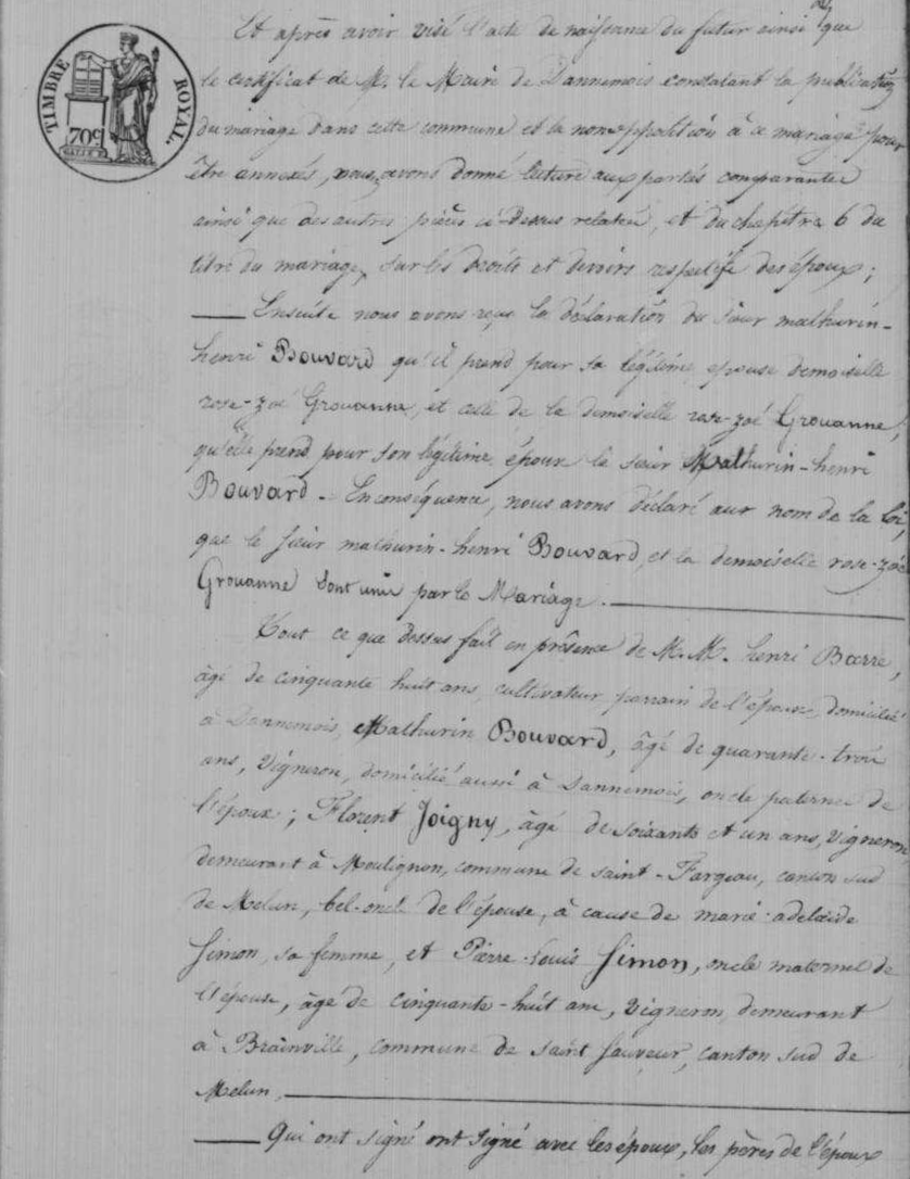 - Il se maria à Auvernaux le 29 mars 1842 avec Rose-Zoé Grouanne (1821-1884).
