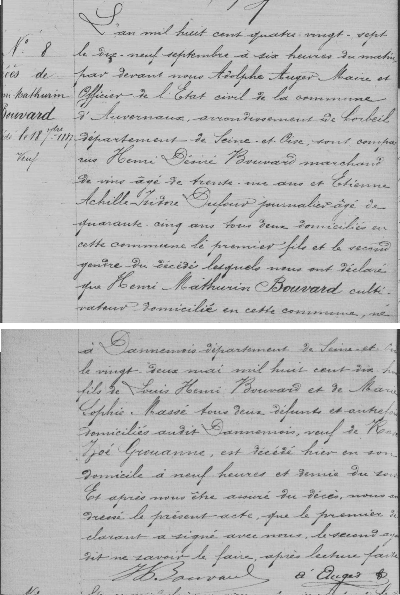 - Décès à Auvernaux en 1887 — AD91 4E/3136.