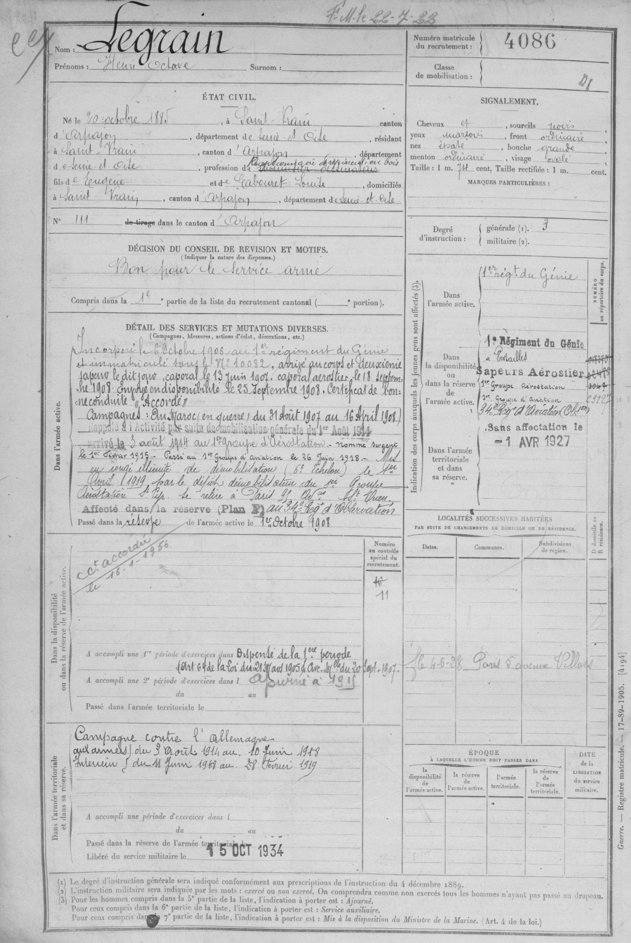 - Henri-Octave Legrain, né le 20 octobre 1885 à Saint-Vrain, était le fils de Louise-Palmyre Cabouret (1861-?) et du menuisier Eugène Legrain (1853-?).