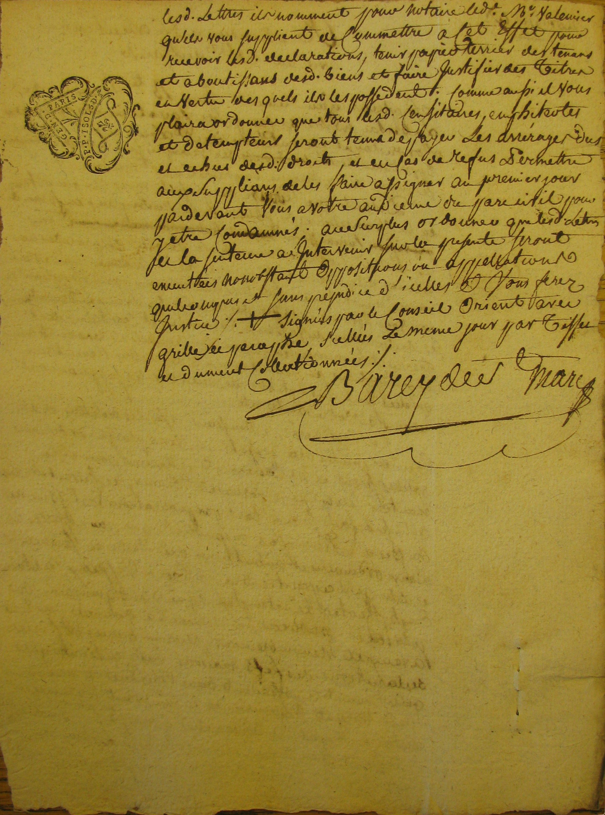 - Autorisation de dresser un terrier de la seigneurie de Saint-Maurice en 1787 — AN Y/5158/A.