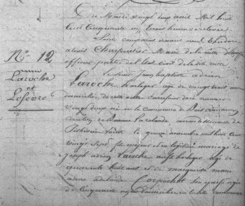 - Jean-Baptiste-Adrien Laroche, né à 15 novembre 1827 à Boiscommun (Loiret), était le fils de Marguerite-Marie-Anne-Adélaïde Corpechot et de l'horloger Joseph-Adrien Laroche (né vers 1803).