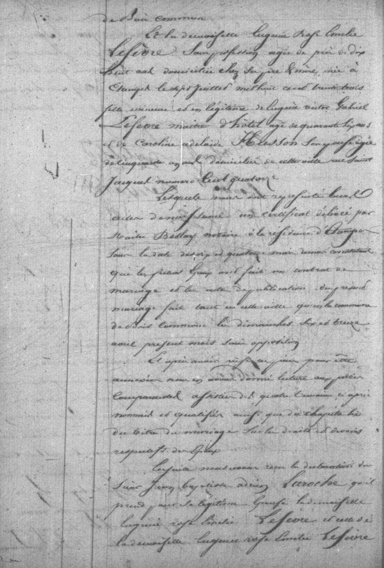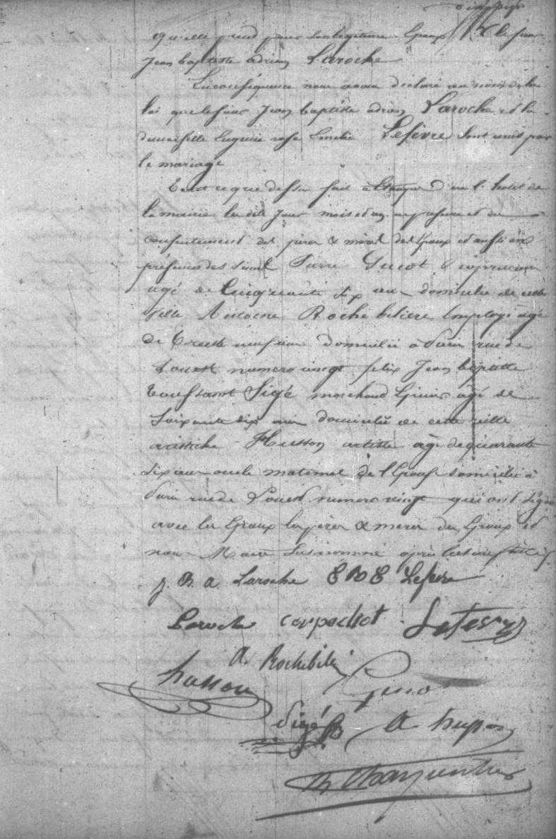 - Marie-Gabrielle Laroche, née à Étampes le 9 mai 1862, mariée à Paris 2e (?) arrondissement le 22 février 1885 avec Pierre-Joseph-François Josselin, mariée à Paris 11e arrondissement le 11 février 1892 avec Jean-Baptiste-Léon Lefèvre, né le 26 avril 1858 à Badonvillers (Meurthe-et-Moselle), fils de Jean-Baptiste Benoit et d'Appoline Jacquel (publication du 31 janvier).