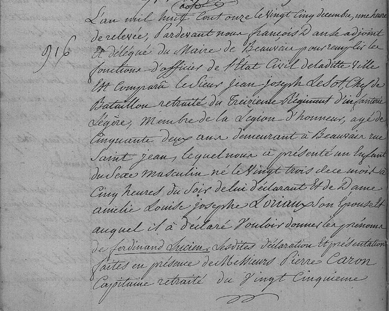- Naissance vers 1822 à Beauvais — AD60 3E57/81.