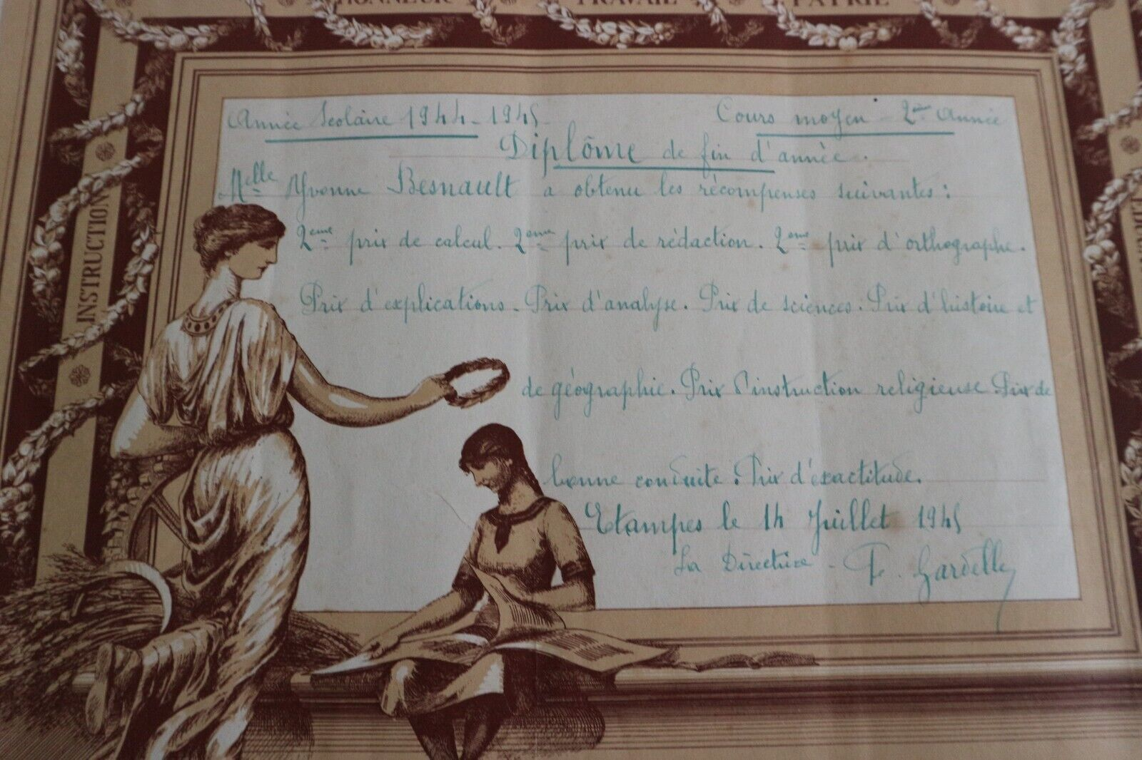 - Diplôme de fin d'année (juillet 1945)