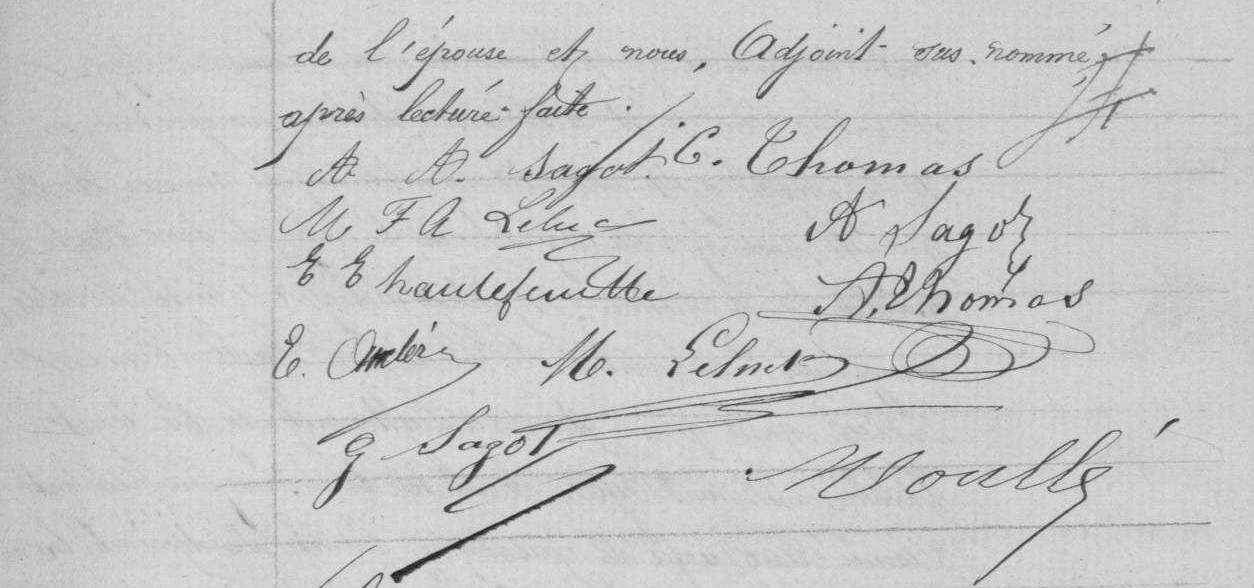 - Il se maria à Étampes le 29 septembre 1889 avec Adélaïde-Aimée Sagot (1864-1960), demeurant à Étampes avec ses parents au hameau de Lhumery, fille de Louise-Eugénie Hautefeuille (1829-1906) et d'Aimé-François Sagot (1826-1911).