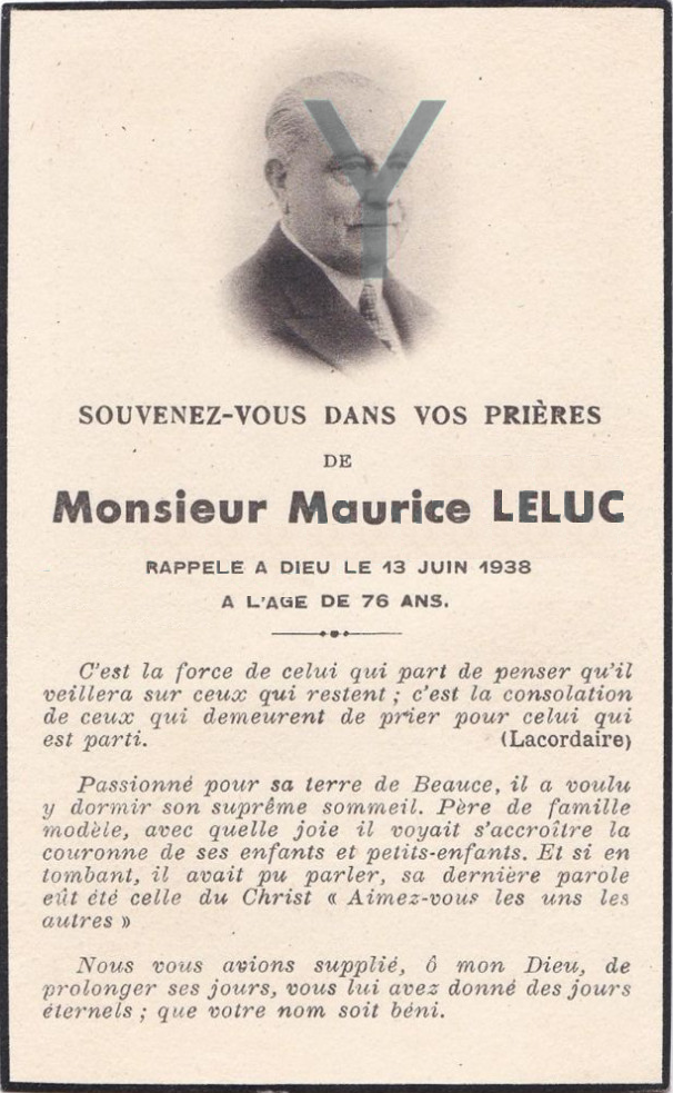 - Maurice-Faustin-Amilcar Leluc, né le 4 août 1862 à Faronville (Loiret), était le fils de Célina-Julie-Adzeline Thomas (1836-1924) et du cultivateur Armand-Amilcar Leluc (1837-1877).