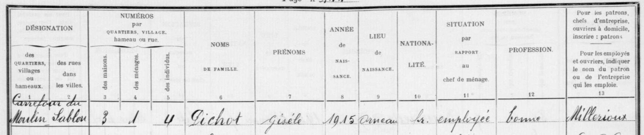 - Réside le 16 septembre 1919 à Étampes 5 carrefour du Moulin Sablon.
