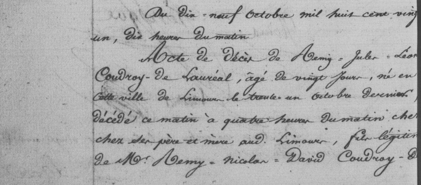 - Rémy-Jules-Léon Coudroy de Lauréal (1821-1821), né et mort à Limours les 30 septembre et 19 octobre 1821.