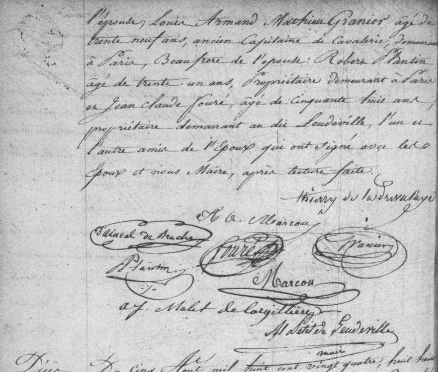 - Il se maria en secondes noces à Leudeville le 19 juillet 1824 avec Agathe-Albertine Marcou (née à Paris le 7 mai 1802 et morte à Fontenay-le-Vicomte le 19 juin 1869 âgée de 67 ans).