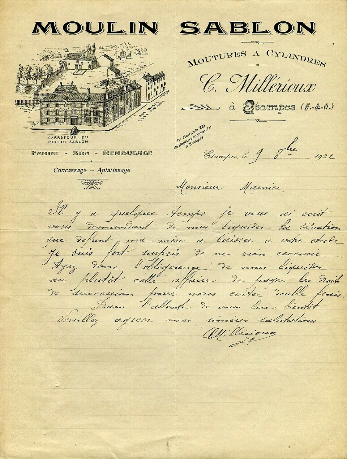 - Courrier à un notaire de 1922