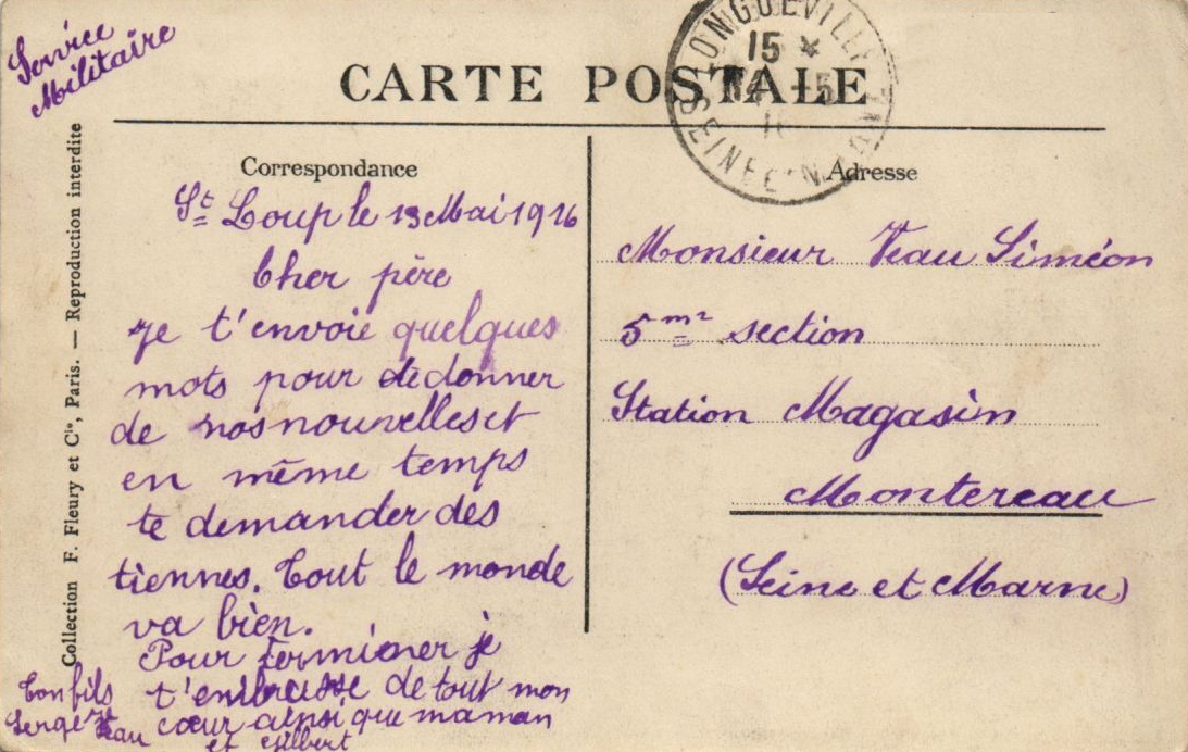 - Carte postale de l'éditeur F. Fleury (vers 1916)