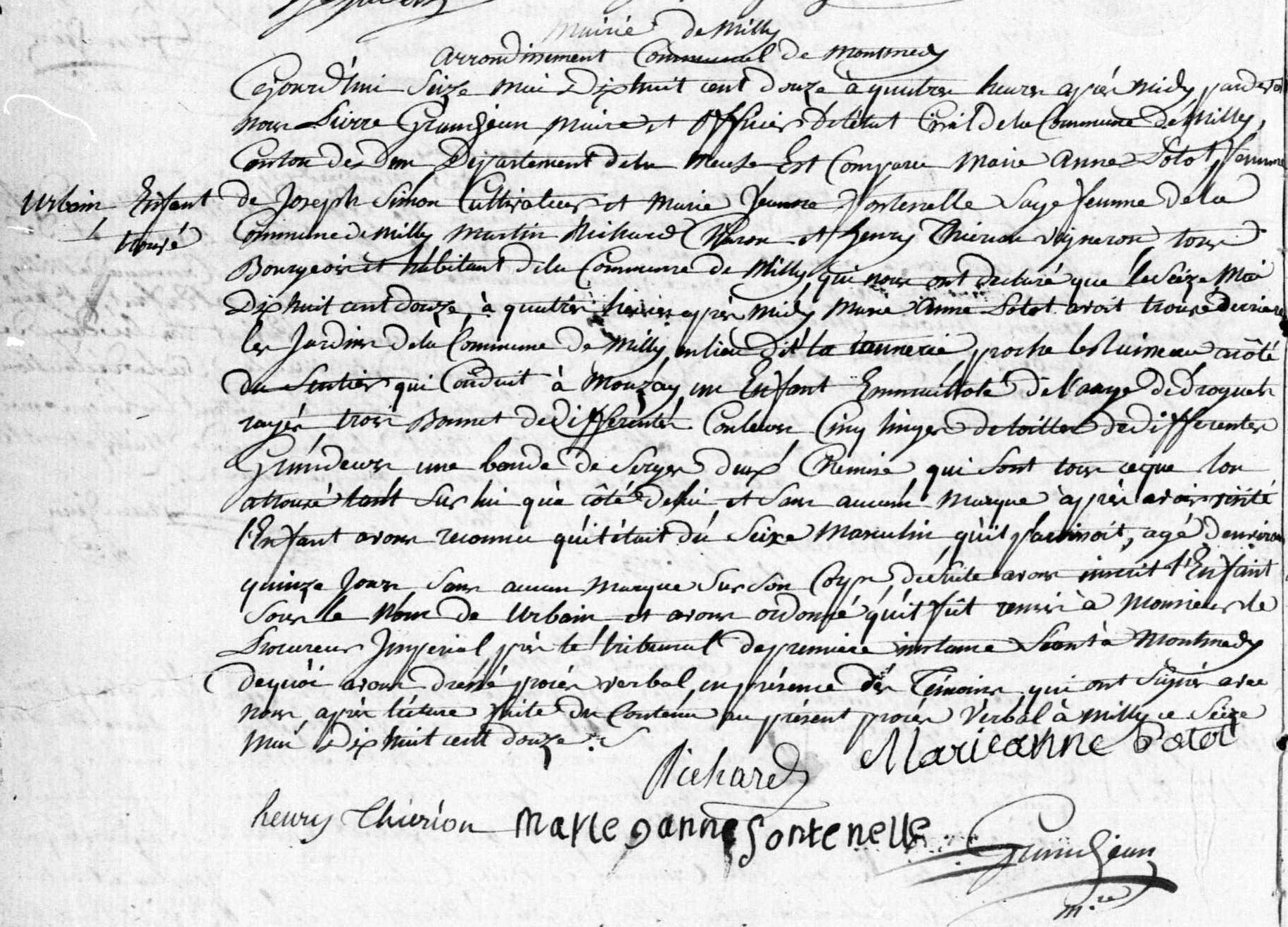 - Enfant trouvé à Milly (Meuse) le 16 mai 1812 — AD55 2E/346/4.