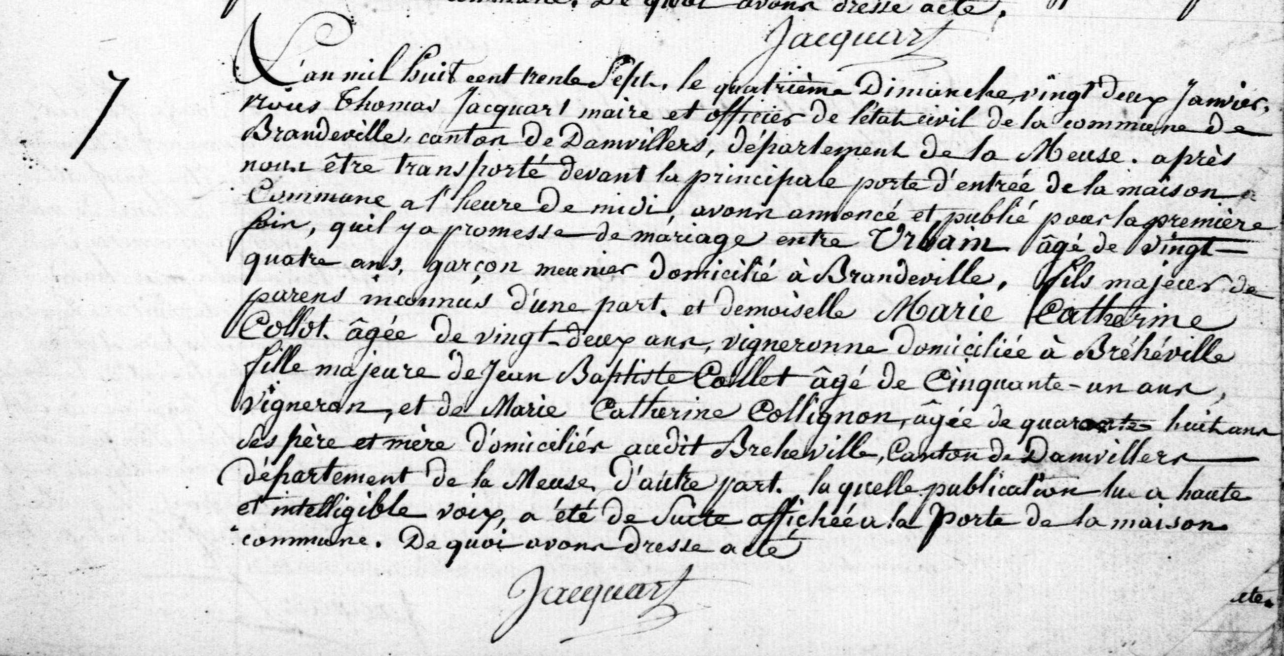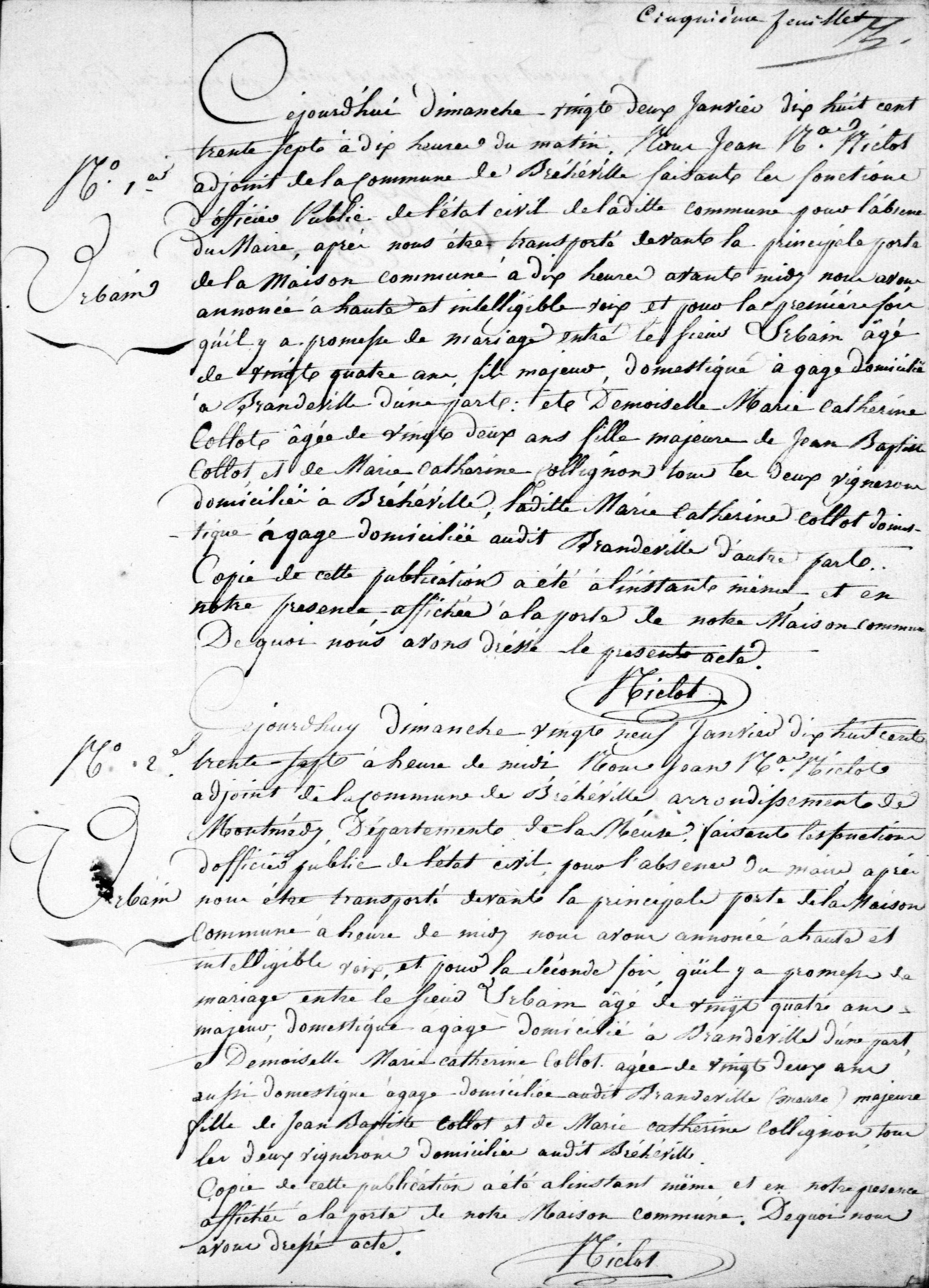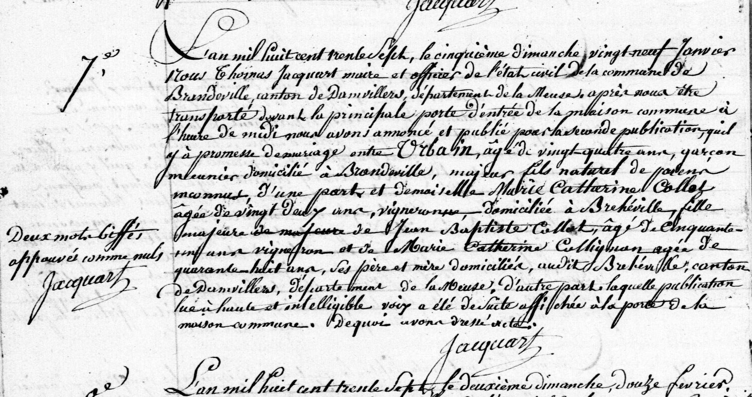 - Bans de mariage à Brandeville en janvier 1837 — AD55 2E/74/9.