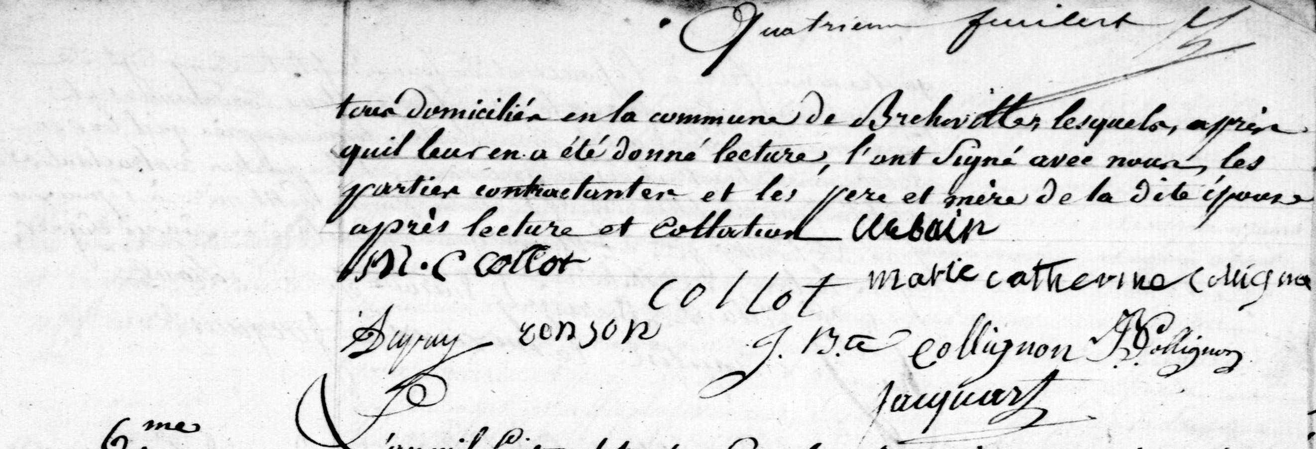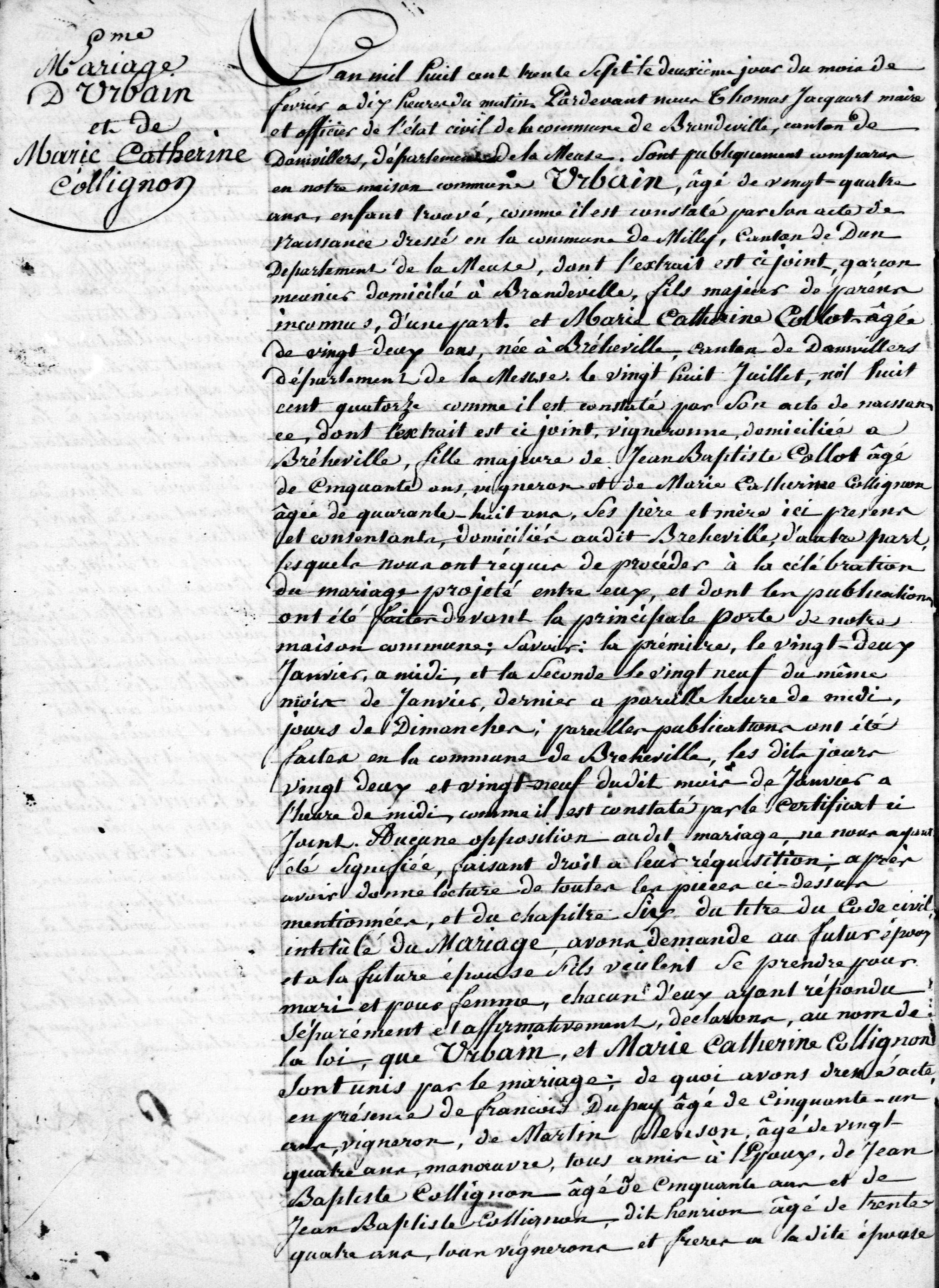 - Marié à Bréhéville (Meuse) le 2 février 1837 avec Marie-Catherine Collot, native de Bréhéville.