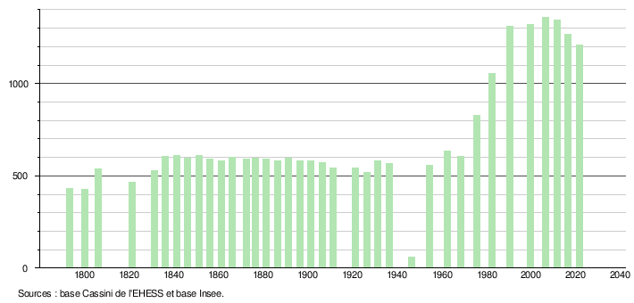 Sur la base de données empruntées, pour les années 1793-1999, au site du Laboratoire de Démographie et d'Histoire Sociale de l'EHESS, École des hautes études en sciences sociales; et, pour les années 2006 à 2021, au site de l'INSEE, Institut national de la statistique et des études économiques.