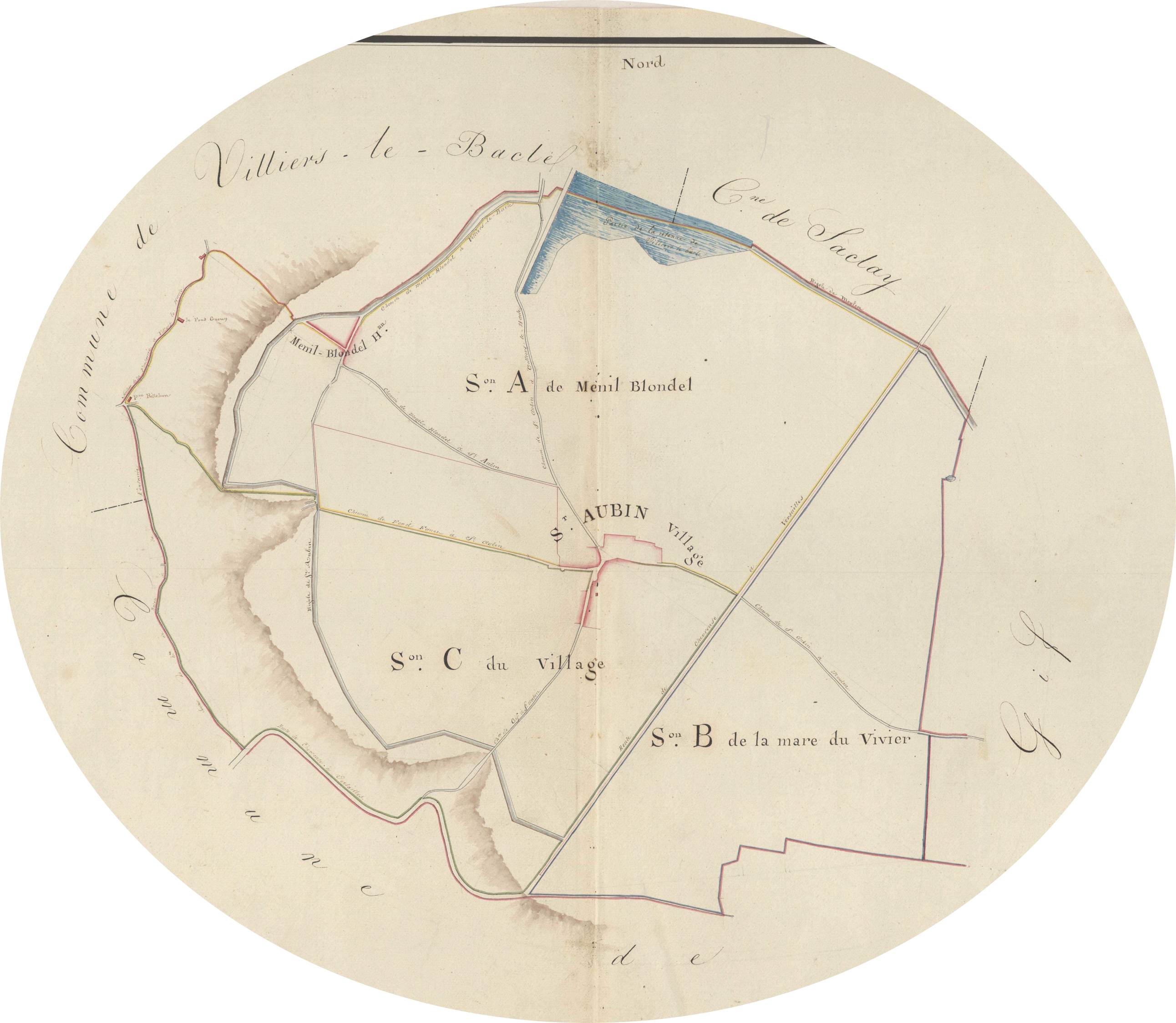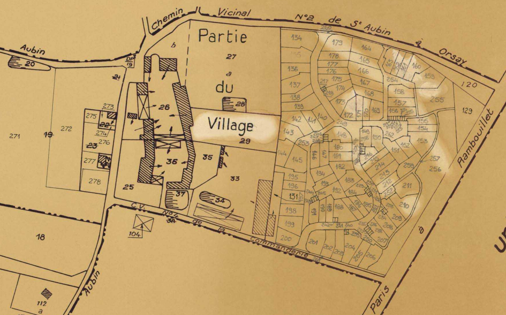 - Anonymes, Saint-Aubin. — Plan révisé pour 1933: plans du tableau d'assemblage, des sections A dite du Mesnil-Blondel, B dite de la mare au vivier et C dite du village. — Plan révisé pour 1933, à jour pour 1968 (2ème édition): plan de la section C dite du village. — Plan révisé pour 1933, à jour pour 1975 (2ème, 3ème édition): plans du tableau d'assemblage, des sections A dite du Mesnil-Blondel, B dite de la Mare au Vivier et C dite du village. — Plan révisé pour 1933, à jour pour 1983 (4ème édition): plan de la section C dite du village. — Plan révisé pour 1933, à jour pour 1984: plan de la section A (au total 11 plans), 1933-1984, conservés aux Archives départementales de l'Essonne sous la cote 1165W/25.