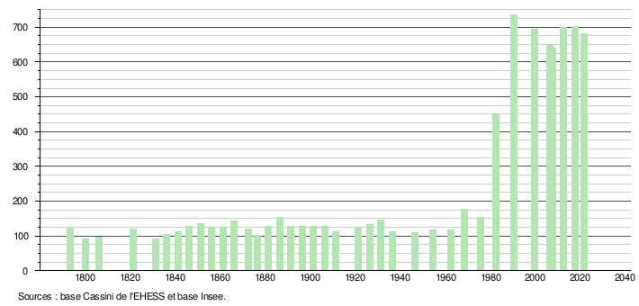 Sur la base de données empruntées, pour les années 1793-1999, au site du Laboratoire de Démographie et d'Histoire Sociale de l'EHESS, École des hautes études en sciences sociales; et, pour les années 2006 à 2021, au site de l'INSEE, Institut national de la statistique et des études économiques.