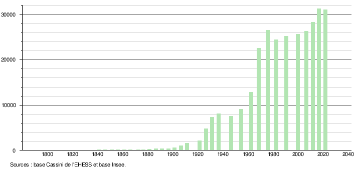 Sur la base de données empruntées, pour les années 1793-1999, au site du Laboratoire de Démographie et d'Histoire Sociale de l'EHESS, École des hautes études en sciences sociales; et, pour les années 2006 à 2021, au site de l'INSEE, Institut national de la statistique et des études économiques.