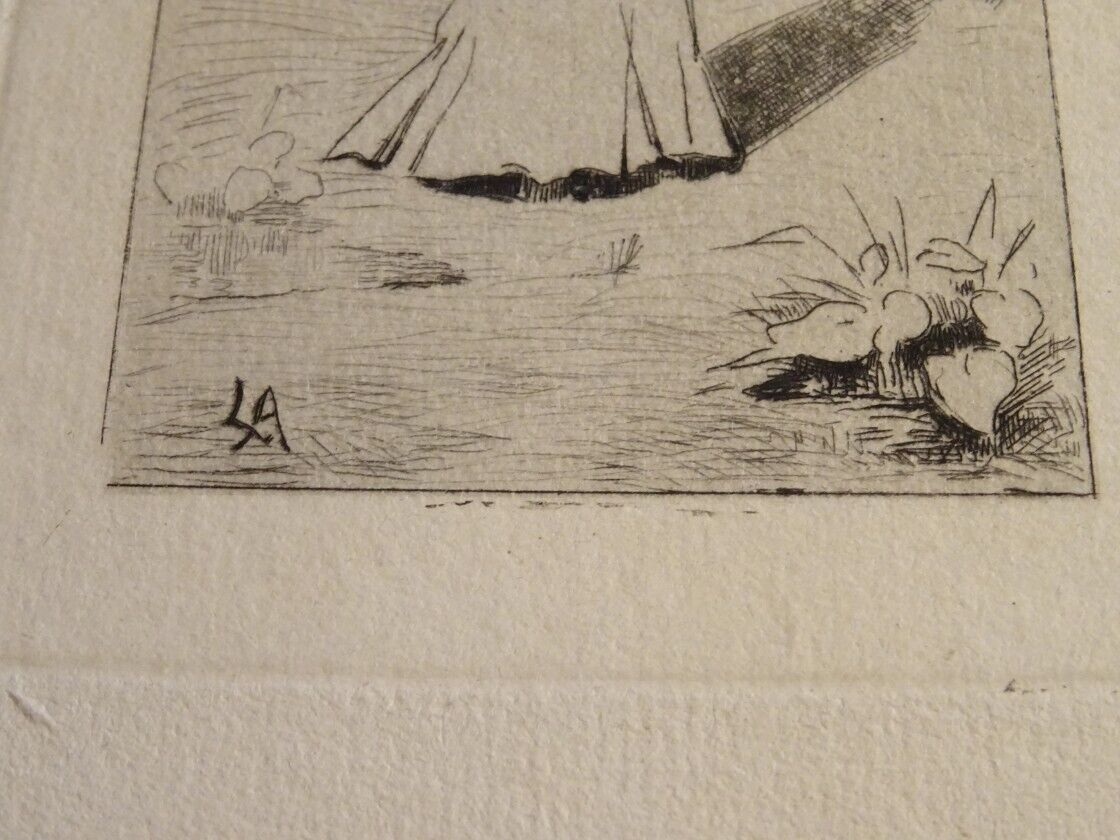 D'après un exemplaire en vente en avril 2024 sur le site d'enchères en ligne eBay, titrée par le vendeur: “une femme à l'ombrelle”, et titrée en bas au crayon: “L. Abbéma - Promenade”. Le vendeur propose une date “vers 1880” et ajoute: “Bon état, sur vergé (grandes marges), rousseurs sur la droite”.
