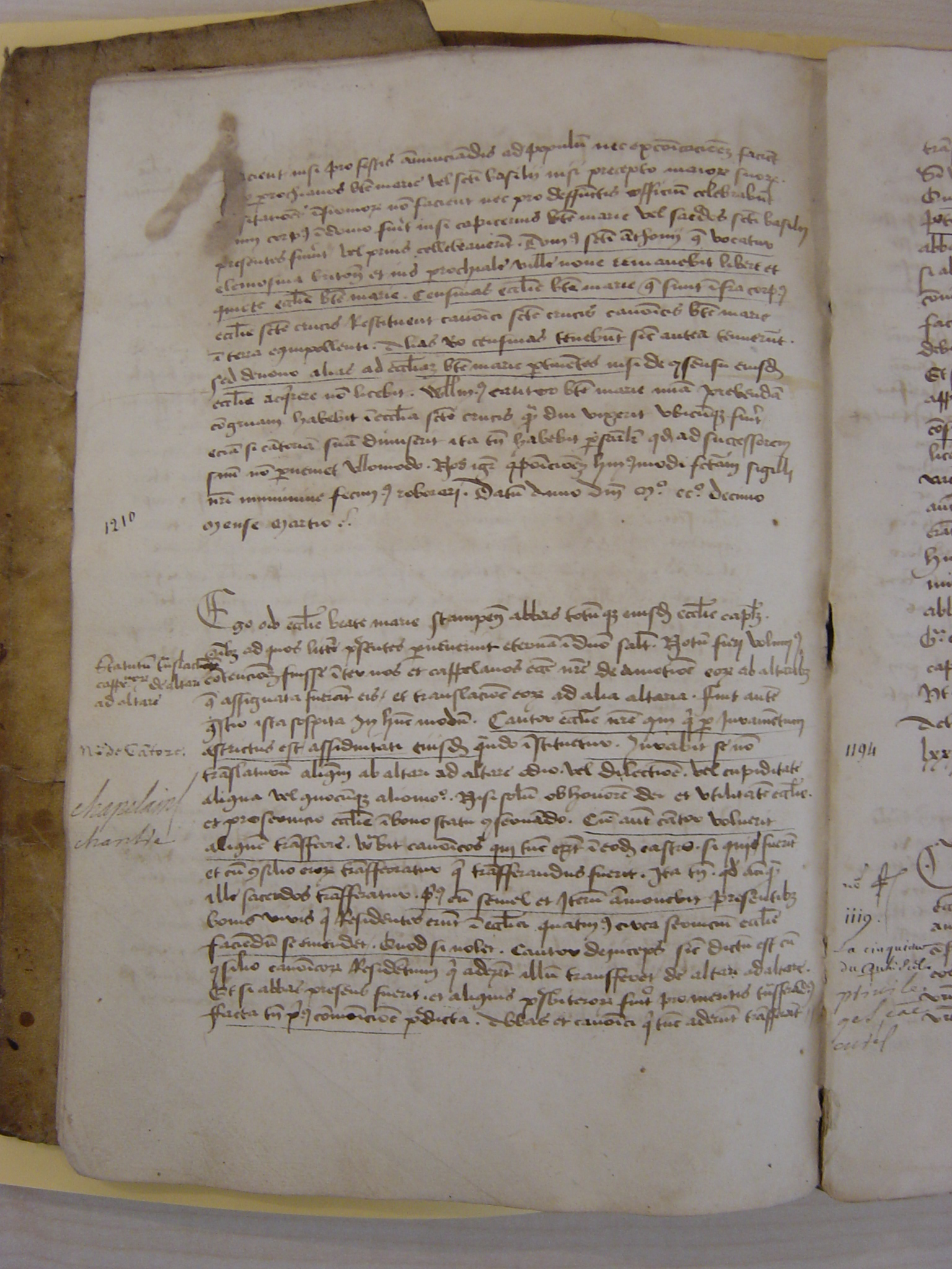 15. — Règlement fait par Eudes, abbé de Notre-Dame d'Étampes, au sujet de la translation des chapelains de cette église d'un autel l'autre. — Étampes, 1193 (1re partie).