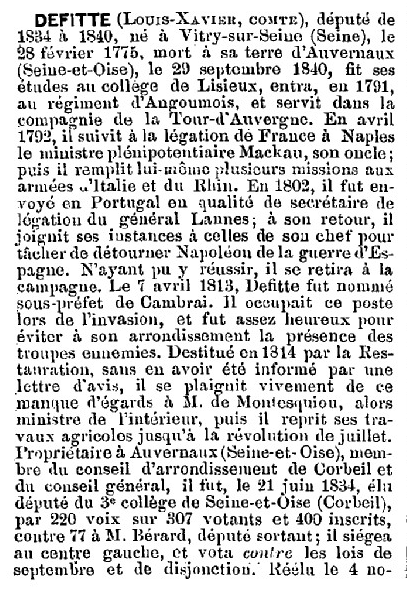 Dictionnaire des parlementaires français, comprenant tous les membres des assemblées françaises et tous les ministres français depuis le 1er mai 1789 jusqu'au 1er mai 1889 avec leurs noms, état civil, états de services, actes politiques, votes parlementaires, etc. publié sous la direction de MM. Adolphe Robert et Gaston Cougny. Cay-Fes, Paris, Edgar Bourloton, 1890, p. 292.