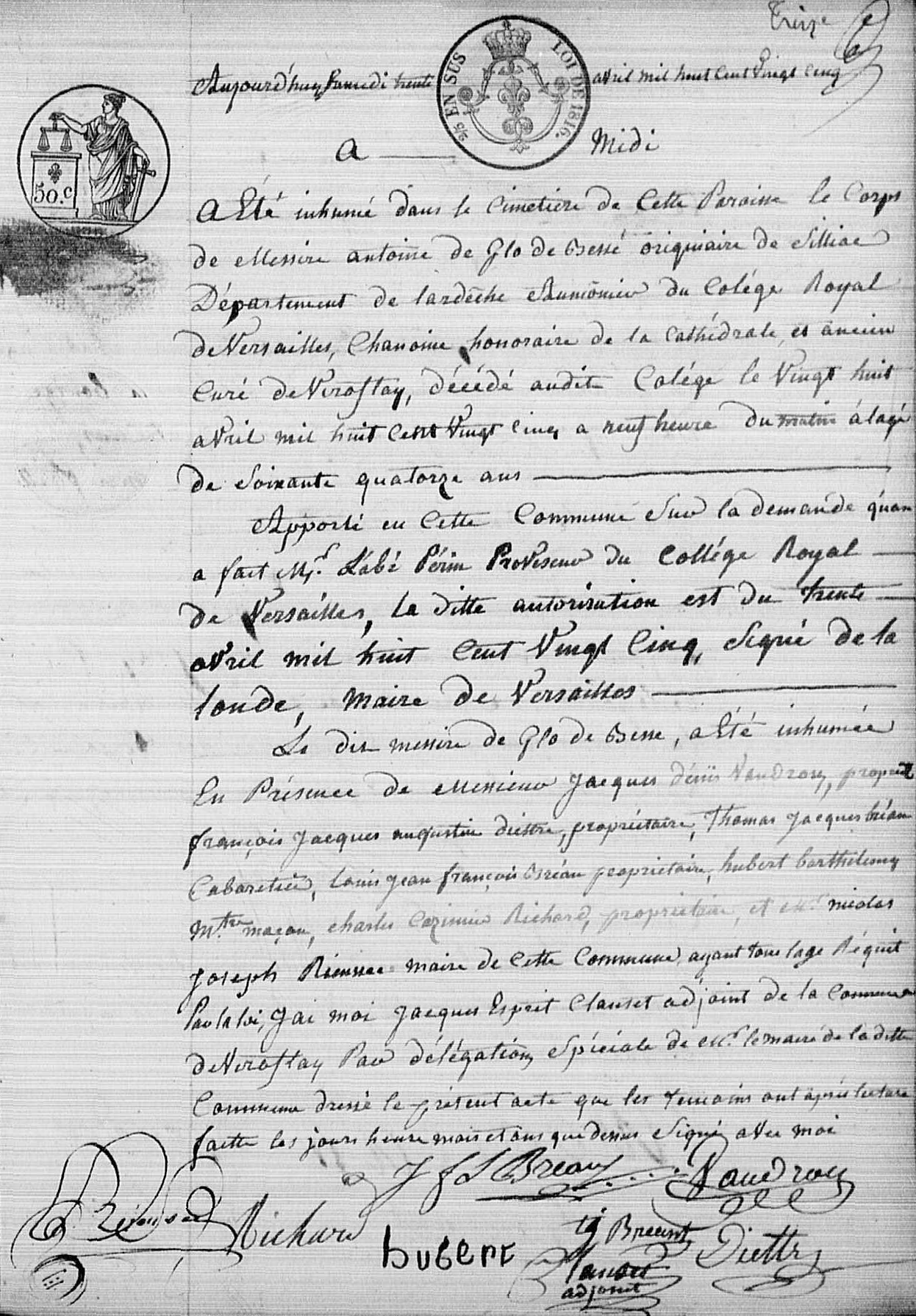 - Inhumation à Viroflay en 1825 — AD78 4E/4245 et 5Mi/1008.