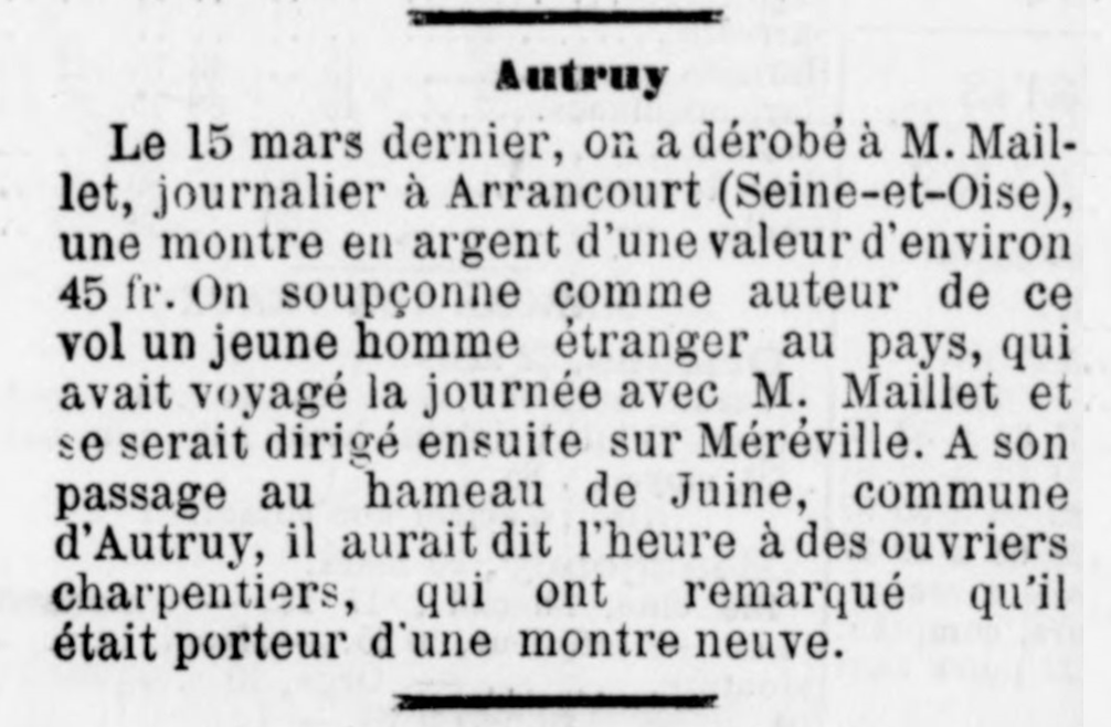 - Vol de montre en 1886 — L'Express du Loiret du 24 mars.