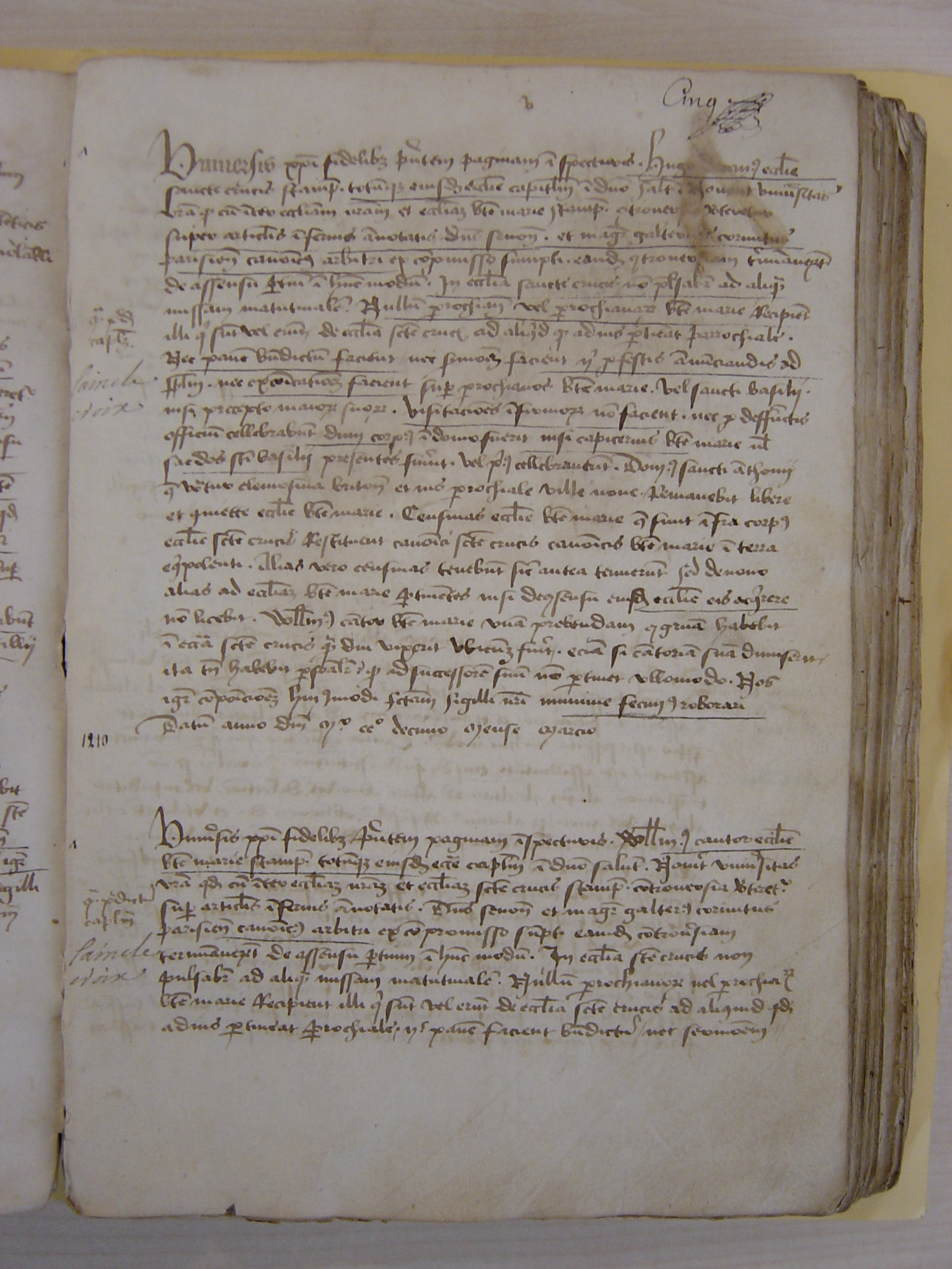 Cinquième folio du cartulaire de Notre-Dame d'Étampes