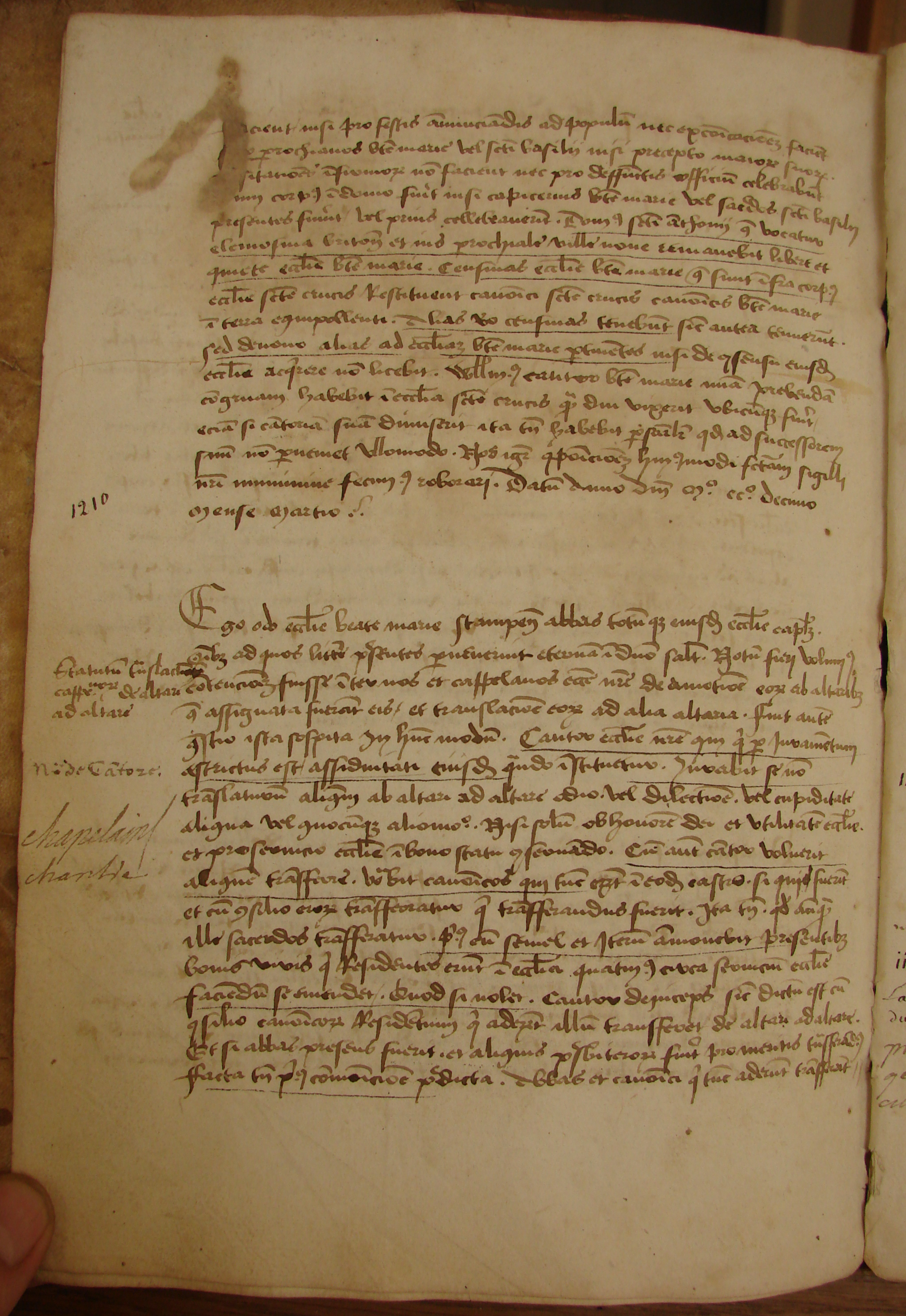 - 15. — Règlement fait par Eudes, abbé de Notre-Dame d'Étampes, au sujet de la translation des chapelains de cette église d'un autel l'autre. — Étampes, 1193 (1re partie).