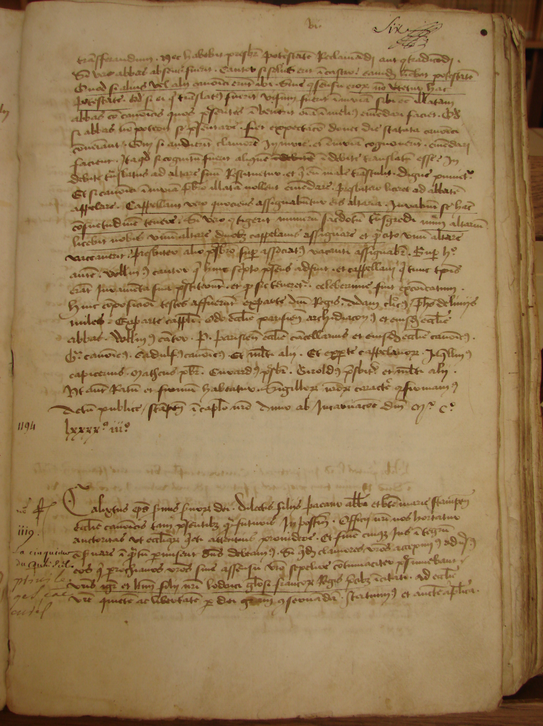 - 15. — Règlement fait par Eudes, abbé de Notre-Dame d'Étampes, au sujet de la translation des chapelains de cette église d'un autel l'autre. — Étampes, 1193 (2e partie).