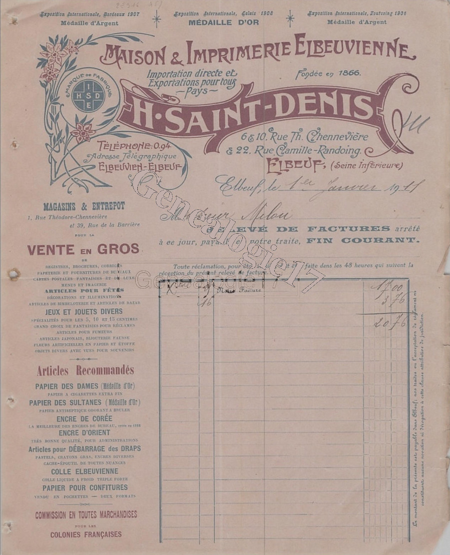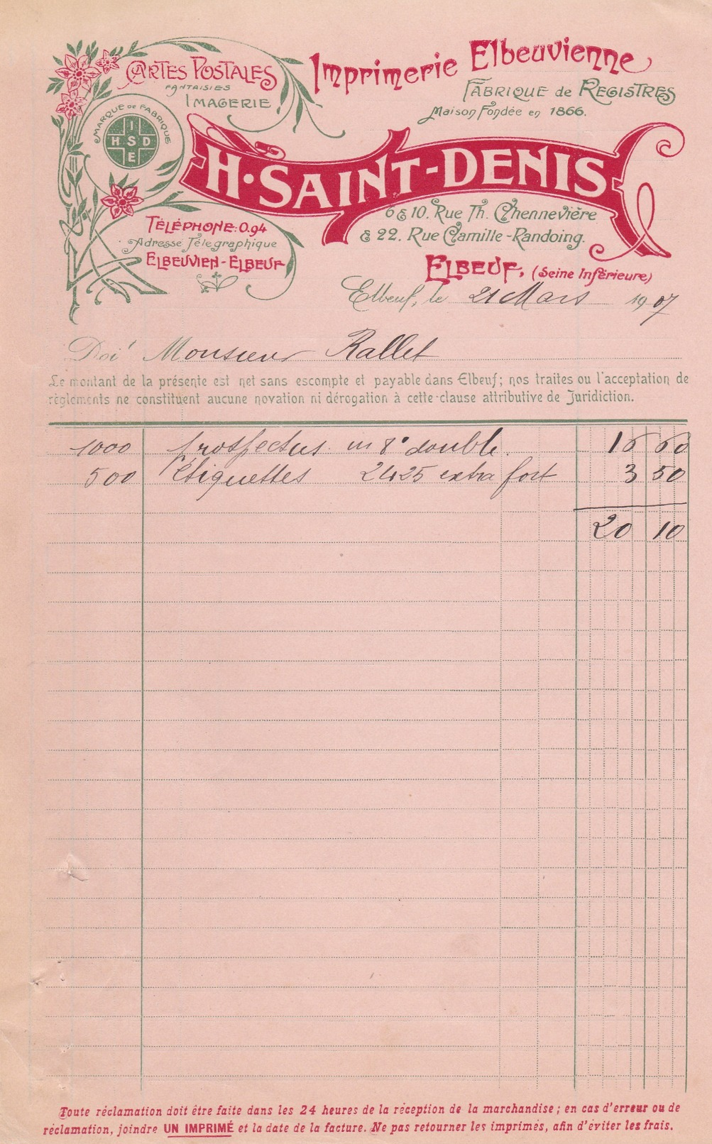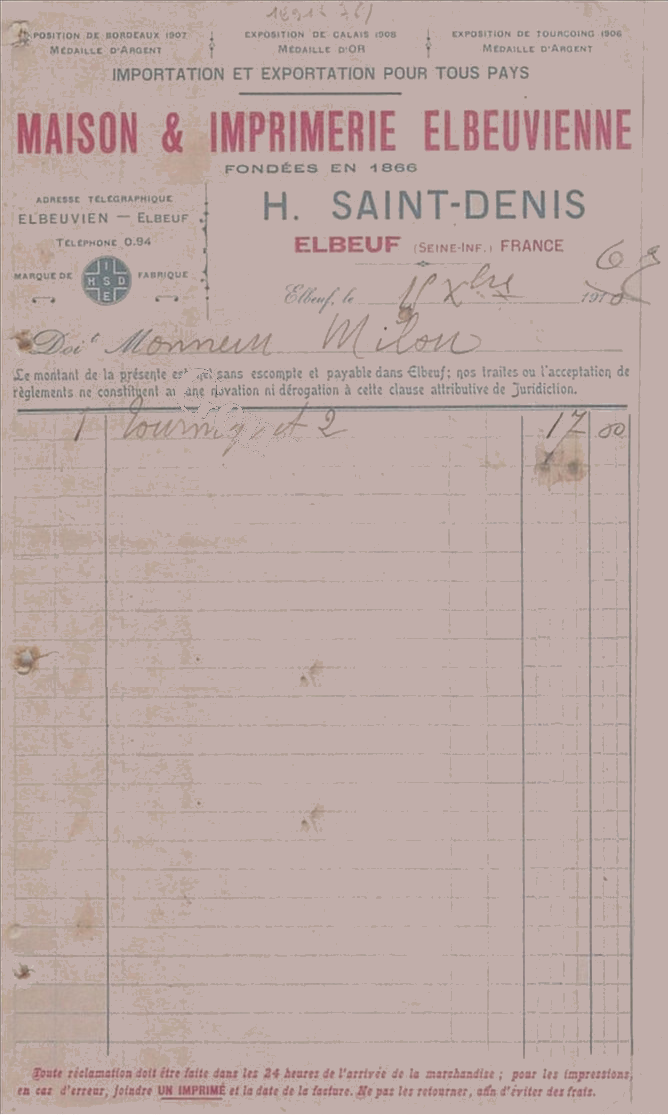 - Factures de 1907, 1910, 1911, 1914, 1917