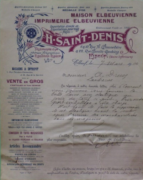 - Henri Saint-Denis ne touche que de très loin à l'Essonne, où on été customisées et diffusées certaines de ces cartes postales passe-partout. Mais comme il est peu connu, on fait ici cadeau à tout le monde de quelques renseignements sur cet éditeur qui fut aussi un historien notable de son beau pays d'Elbeuf.
