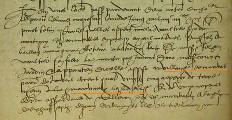 On note également que Jehan de Baillon, seigneur de Marivault, baille à titre de ferme & moisson de grain jusqu'à six ans à Jehan Vaultier, son neveu, laboureur à Janvry, absent, et à Olivier Vaultier, son oncle, prêtre vicaire dudit Janvry, une pièce d'ung arpent à la Mare aux Vaches, …. moyennant trois minots de grain rendu en son hôtel audit Marivaulx. On reste en famille!!