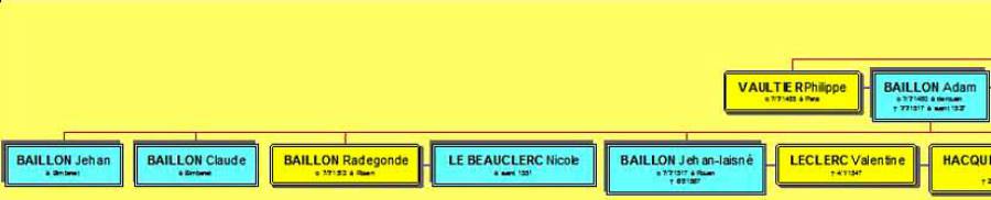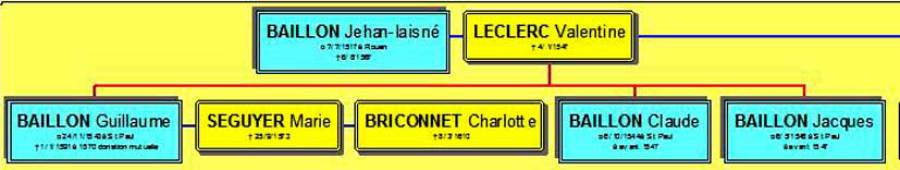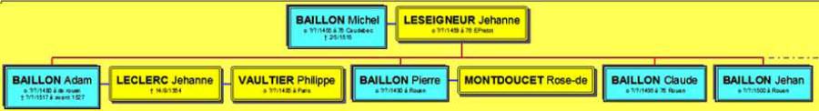 Notre seigneur de “Marivaulx les Janvris”, décide de se marier en 1542, avec Valentine Leclerc, fille mineure de feu Michel, notaire & secrétaire du roy, et de Madeleine Alard, qui lui apporte 4.000 livres tournois dans la corbeille. De son côté, l'époux se contente de douer sa future de 100 livres tournois de rente. Leur courte union leur donnera trois enfants dont seul Guillaume survivra. Valentine meurt à la fin de l'année 1546. < De son inventaire après décès, nous aurons la confirmation de l'ascendance des Baillon, Adam son père et Michel son grand-père, vicomte de Caudebec. >