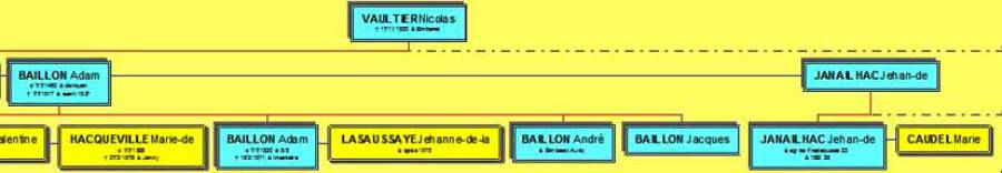 Durant cette période, Philippe Vaultier, fille de Nicolas, s'unit à Jehan de Janailhac, qui devient seigneur de Montigny. En 1512, devenue veuve, Philippe Vaultier épouse Adam de Baillon. De cette seconde union vont naître au moins sept enfants, dont cinq seront concernés par le domaine de Marivaulx.