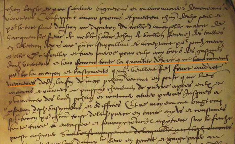 “Vinrent en jugement devant Fremin de Quoquerel, garde de la prévosté de Paris, frère Guillaume de Sancerre commandeur de Hessend, frère Jehan de Montlhéry commandeur du Déluge, & Roger de Gildesbourg élève procureur de Guillaume de Tochalle, prieur de la saincte maison de lhospital de sainct Jehan de Hiérusalem en Angleterre, que eulx au nom dudit prieur et pour le proffit de la maison du déluge font eschange & permutation de biens avec Monseigneur Thomas de Bruière, chevallier, des héritages qui ensuivent, savoir le déluge donne: