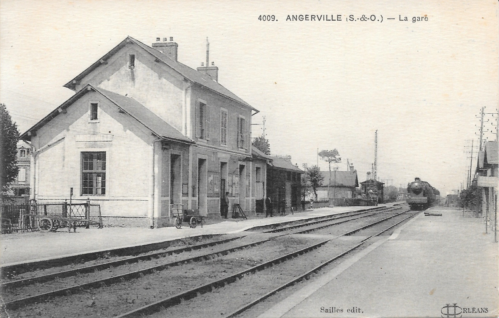 - Éditeur, numéro et titre: Sailles (en fait JL-Orléans), 4009, Angerville (Seine-et-Oise), La gare.