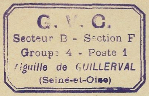 - Tampon: G.V.C - Secteur B - Section F - Groupe 4 - Poste 1 - Aiguille de Guillerval (Seine-et-Oise)